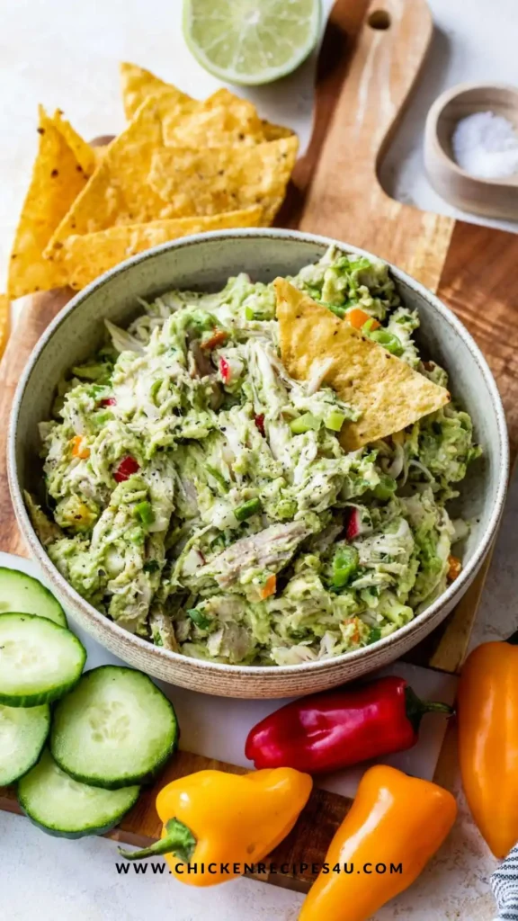 • Why avocado instead of mayo? Avocado gives creamy texture and healthy fats. When mashed or diced among the chicken, it coats pieces much like mayo would, but tastes fresh.