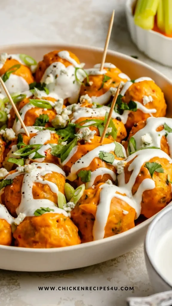 Buffalo Chicken Meatballs are an easy crowd pleaser. They combine the familiar buffalo flavor with a kid friendly meatball format. I like to bake them and toss them in a buttery buffalo sauce, then serve them with a cool cucumber salad or ranch for balance. Give this recipe a try and adjust the heat level to your preference. I hope you enjoy them as much as I do.