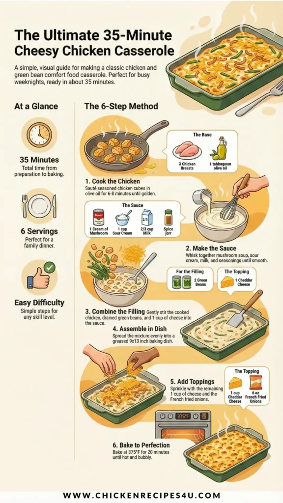 This Chicken and Green Bean Casserole is creamy, cheesy, and full of comforting flavors. It is easy to make, filling, and perfect for nights when you want something warm and satisfying.