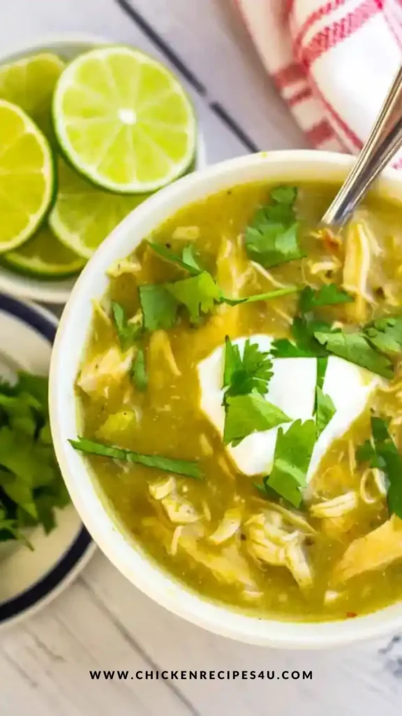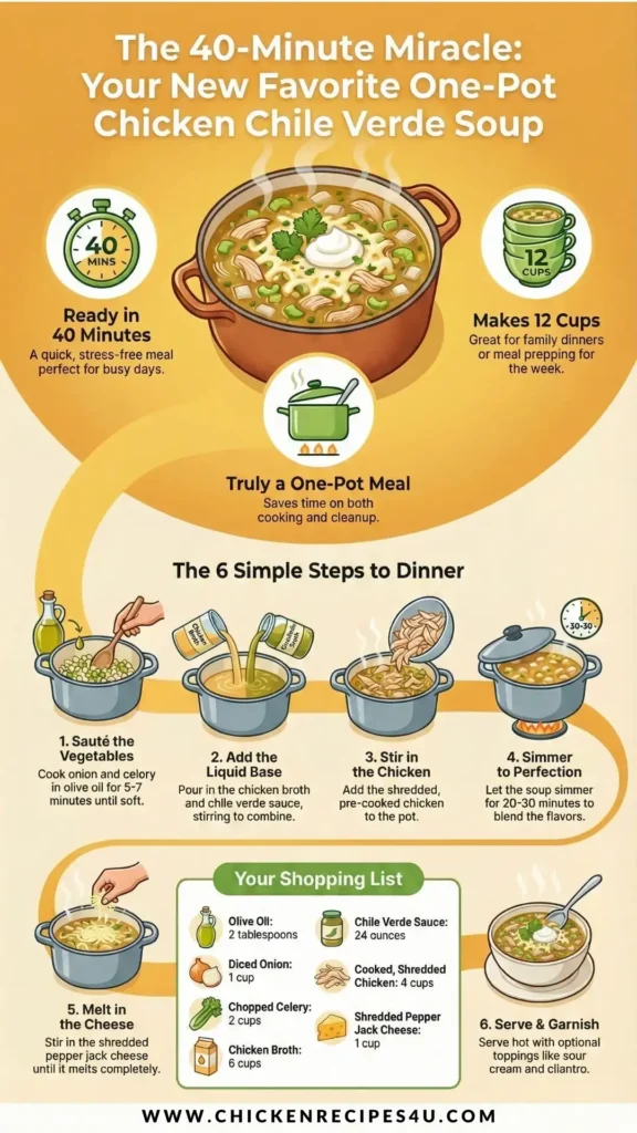 This soup brings together tender chicken and bold green chile flavor in the easiest way possible. Here’s how it all comes together: