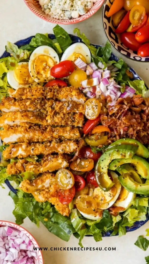 My Chicken Cobb Salad is a great all-in-one meal that balances crunch, creaminess, and savory bites. I love how easy it is to scale up for guests or to make ahead (just keep the dressing separate). Once you try the oven-baked crispy chicken and that simple balsamic vinaigrette together, this salad will become a go-to for busy weeknights and weekend lunches alike.