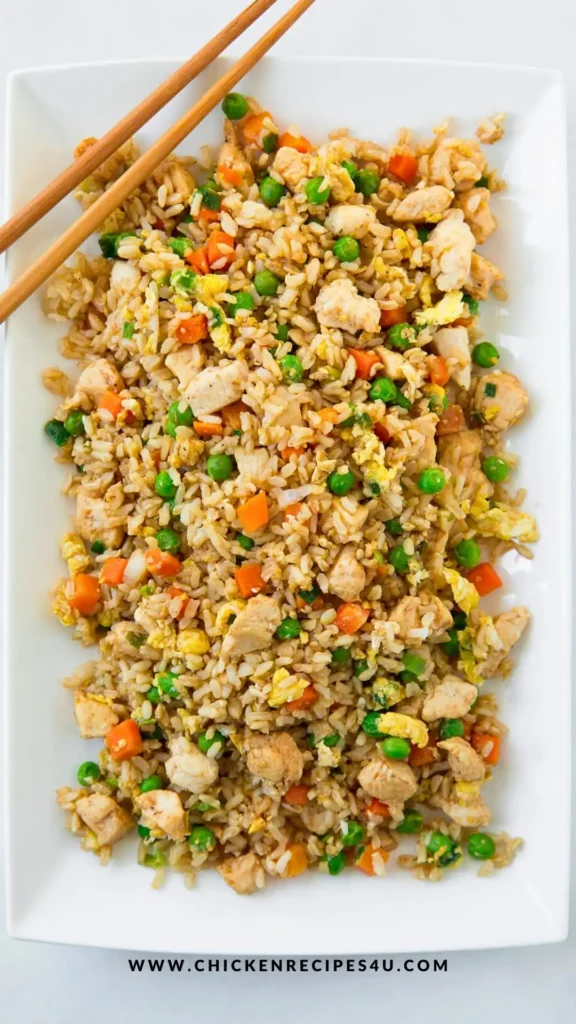 I’m so excited to share my Chicken Fried Rice recipe with you! This is a quick, comforting one-pan meal that tastes better than takeout — tender chicken, fluffy grains of rice, a soft scrambled egg, and savory soy flavor all stir-fried together. It’s fast, simple, and great for using up leftovers.