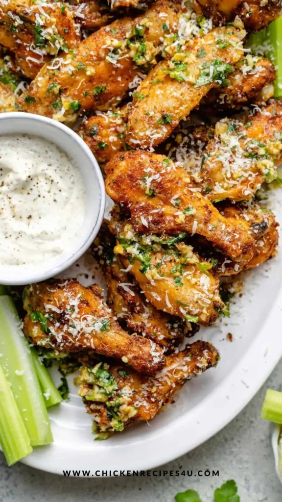 • Air fryer option: Cook wings in an air fryer at 400°F for 20–25 minutes, turning halfway, then toss in the garlic-Parmesan sauce.