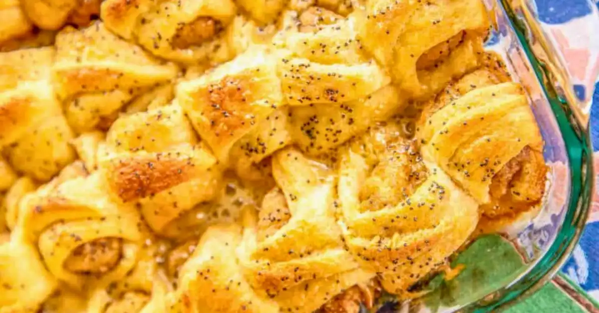 These little minis are simple to build, and the oven does most of the work. You wrap chicken nuggets in crescent triangles, pour a quick butter and sugar glaze on top, and bake until golden. The result is soft, sticky, and a little crispy in the best way.