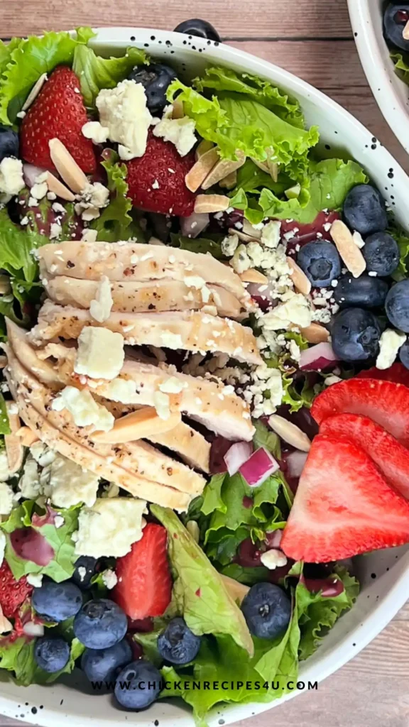 This salad blends sweet fruit, tangy vinegar, and juicy grilled chicken into one fresh meal. Here’s how it all comes together: