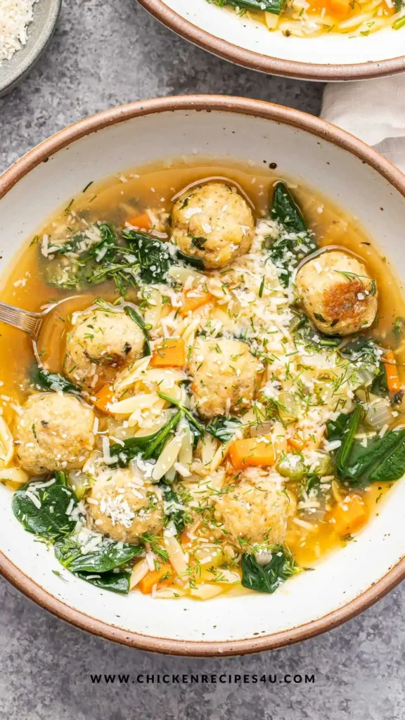 This soup is simple enough for a beginner to try, but it also feels like something you could serve to guests. You make small meatballs, cook chicken until it is easy to shred, then bring everything together in a big pot with broth and soft veggies.