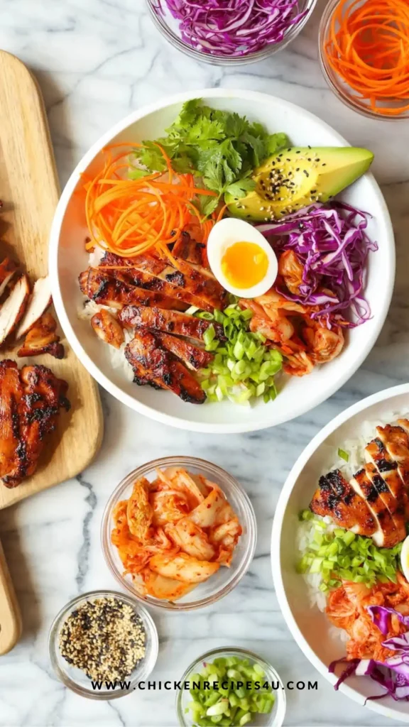 These Korean Chicken Bowls are full of juicy chicken, bold flavor, and fresh toppings all in one satisfying bowl. They are easy to prep ahead, fun to assemble, and great for busy nights.