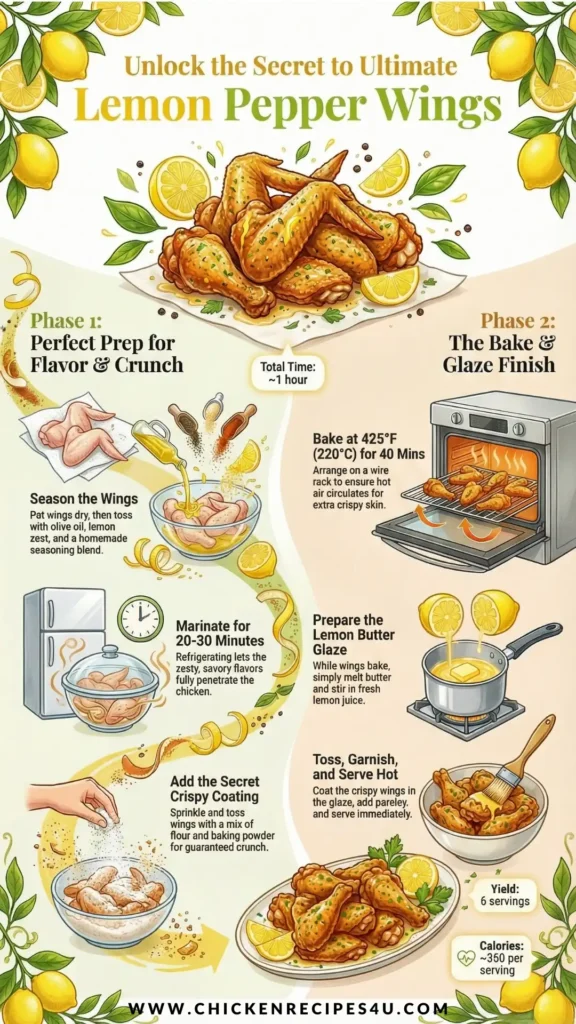 These wings are baked to a golden crisp and finished with a tangy lemon butter sauce. Here’s how they come together: