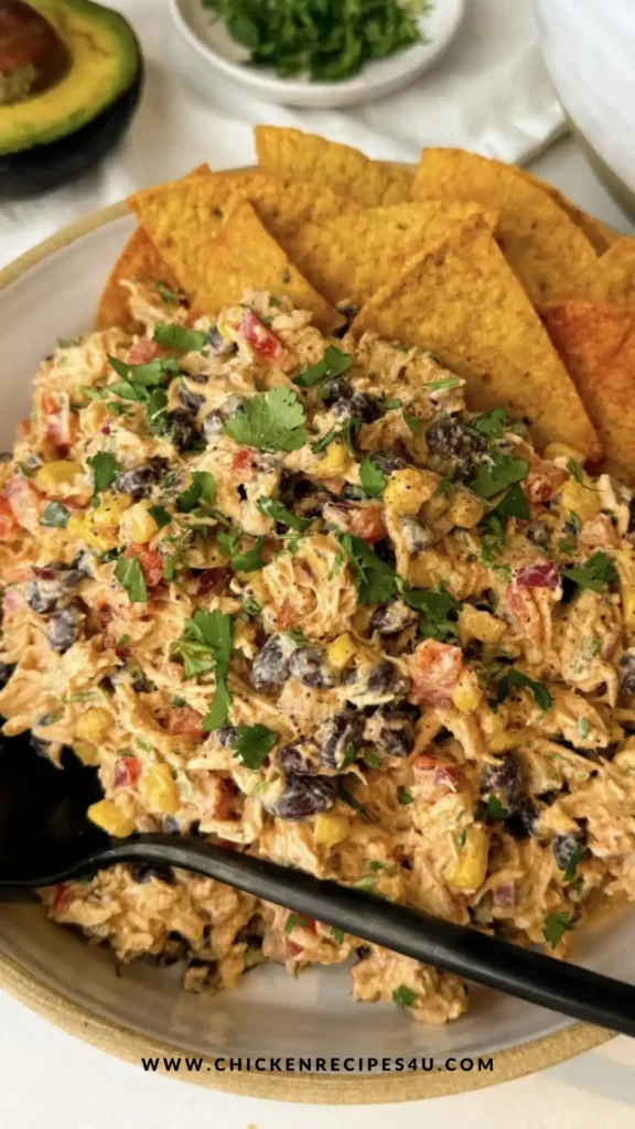 - Combine the salad: Add shredded chicken, black beans, corn, red bell pepper, red onion, and cilantro to the dressing. Stir until everything is evenly coated. Taste and adjust salt, pepper, or lime juice.