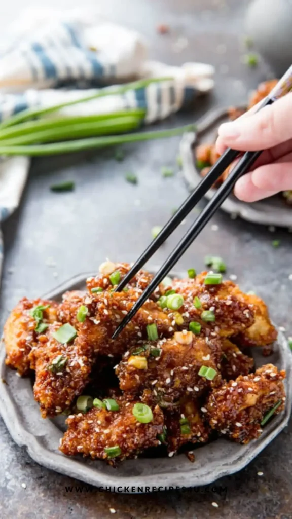 I make this when I want big flavor without a lot of fuss. The idea is simple. We lightly coat chicken with cornstarch so it browns nicely in hot oil. Then we make a sauce that balances sweet, salty, tangy and a little heat. Finally we toss the cooked chicken in the sauce so it gets a sticky glaze.