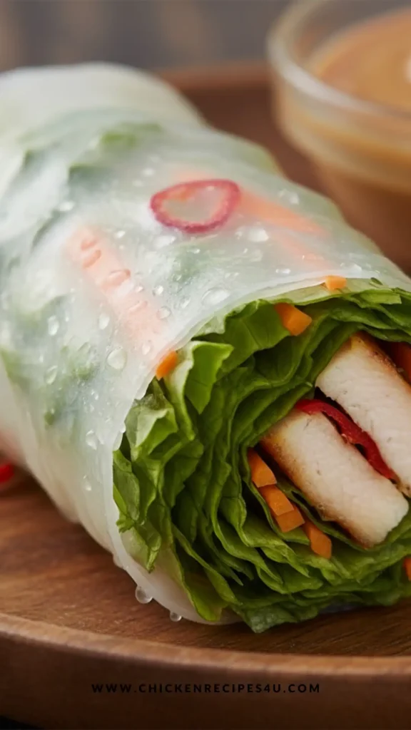 I still remember the first time I made these spring rolls at home, my kitchen felt so fresh and lively. I love how you can see all the colors of the chicken and vegetables right through the wrapper.